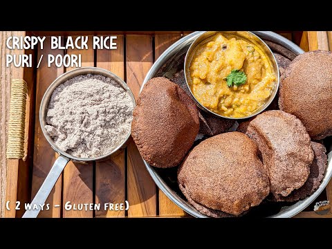 Crispy Black Rice Puri 2 ways | Puri Recipe | Poori | Chawal Ki Puri | Karuppu Kavuni Rice