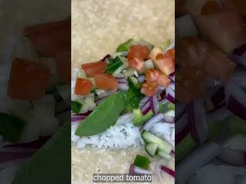 Assembly: place the tortilla on a clean working surface, first layer 2 tablespoons of rice, then 3-4 tablespoons of the meat mixture, then 1-2 teaspoons of corn, 1-2 teaspoons of beans, chopped lettuce, chopped tomato and grated cheese of your choice. Fold the sides of the tortilla and roll as shown in the video.