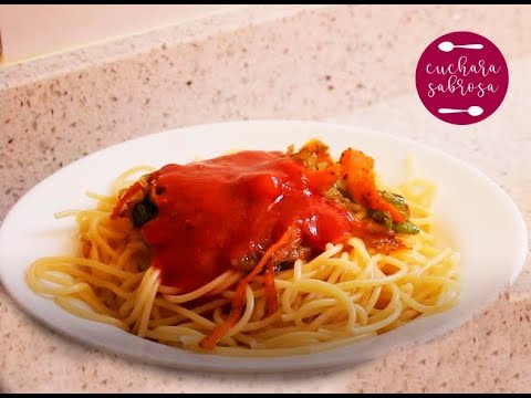Espaguetis con salsa de tomate y pimiento (recetas baja en proteínas)