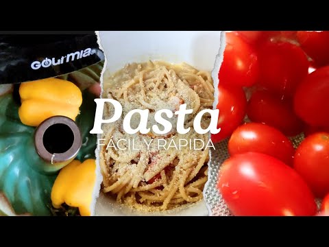 Pasta cremosa con pimiento amarillo y tomate uva (Fácil y Rápida)
