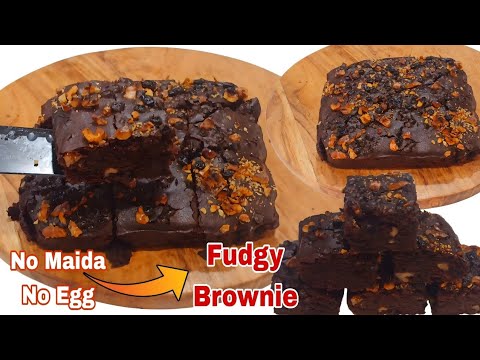 How to Make FUDGY Chocolate Brownie Eggless & Without Oven at Home Recipe