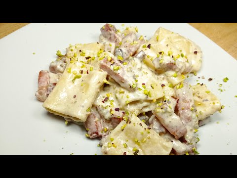 Pasta con crema di formaggio, guanciale e pistacchio