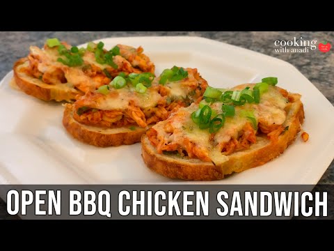 Open Faced BBQ Chicken Grilled Cheese Sandwich | How to Make Shredded Chicken | Open Faced Sandwich