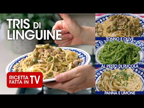 TRIS DI LINGUINE: PESTO DI RUCOLA, TONNO E OLIVE, PANNA E LIMONE - Ricetta TV Fatto in Casa per Voi