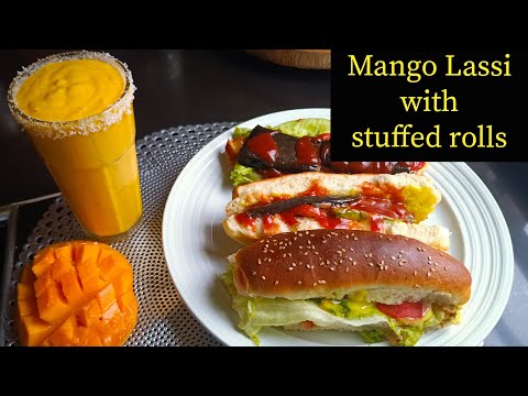 How to prepare mango lassi and stuffed bread rolls.#smoothie #mango #sandwich