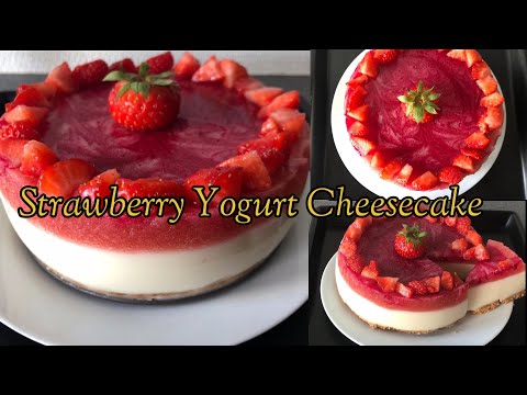 No-Bake Strawberry Yogurt cheese Cake | The Easiest Way To Make Cheesecake | Yogurt Rare Cheesecake
