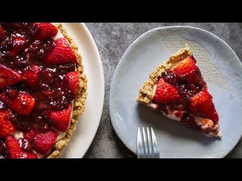 No Bake Strawberry Cheesecake 🍓 with A Salted Almond Crust 😋