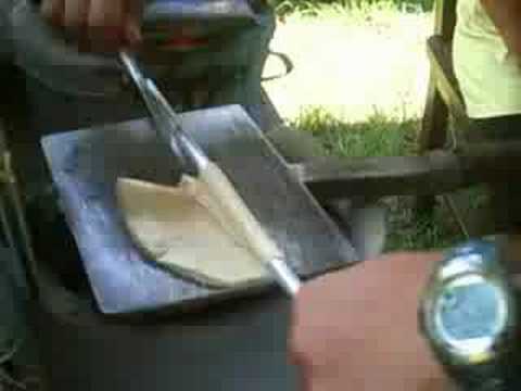 Once it’s cooked quickly remove parchment paper in the pan. Quickly roll the barquillos into a skewer or chopstick while it’s still soft and hot because barquillos hardens quickly just be careful because it’s still hot.