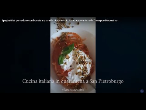 Spaghetti al pomodoro con burrata e granella di pistacchio.Ricetta presentata da Giuseppe D'Agostino