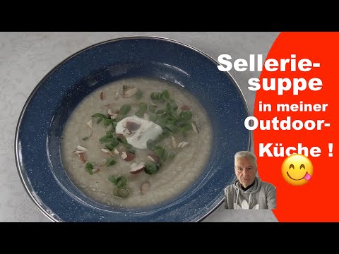 Selleriesuppe mit Mandeltopping in meiner Outdoor Küche 😋...